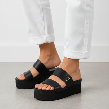 Sandalia Dama All Negro Coral Bryce COBRYCEALNE Estas sandalias tipo plataforma en tono Negro combinan elegancia minimalista con un diseño moderno y funcional. Su doble tira ancha en sintético suave brinda un...