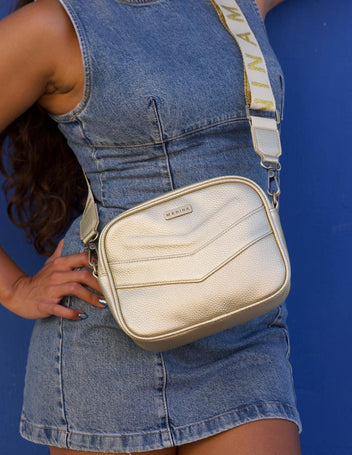 Bolso Dama Dorado MENINA Maya MEMAYADO Bolso Menina Diseño sofisticado que eleva cualquier look. Funcional, moderno y con acabados cuidadosamente pensados para acompañarte con estilo en cada ocasión. CÓDIGO MEMAYADO...