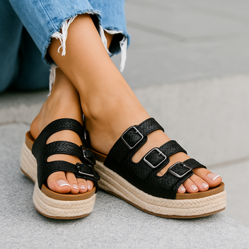 Sandalia Dama Negro VSINGULAR VSFELINE Estas sandalias tipo plataforma se adapta naturalmente a la forma del pie La suela en bloque con diseño no solo añade altura, sino también tracción y...