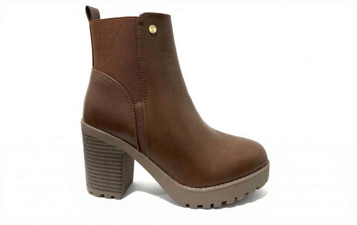 Esta bota de tacón Bajo es una declaración de estilo: fabricada en Sintetico, color Cafe de acabado liso, su silueta limpia abraza el tobillo con sutileza y carácter.